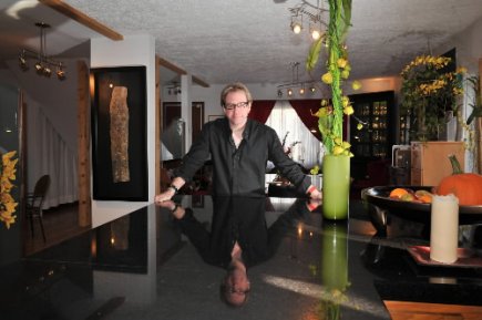 La résidence de Jean Gaudreau est un espace de création éclectique. L'aménagement intérieur n'a rien de stéréotypé. Chaque pièce d'ameublement, chaque détail d'architecture, et ce, jusqu'au choix des matériaux, reflètent la personnalité et le style de vie de cet artiste-peintre que l'on a pu voir, cet été, dans le Moulin à images de Robert Lepage.