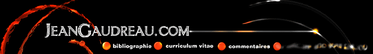 19 août 2009, -Journal Québec Express, 6 Janvier 2007, -Parcours 2006, Vol.12 No.1, -Cahier MAISON, Journal LE SOLEIL 23 Décembre 2006, -Cahier ART SCÈNES, Journal LE SOLEIL 12 Novembre 2005, -OEUVRES CHOISIES, COLLECTION CIRQUE DU SOLEIL 2004, -Journal Le SOLEIL, Cahier ARTS, 3 Mai 2003, -Affaire Plus Janvier 2003, -Vie des arts Été 2000, No.179, -Cahier spécial, Parcours Printemps 1999 Vol.5 No.1, -Vie des Arts, Hiver 1995, No.161, -Facicule JEAN GAUDREAU, -Facicule Parcours JEAN GAUDREAU, -Facicule JEAN GAUDREAU de la Galerie d' art CIMON, -OÙ, Cahier Parcours, -Magazine Vie des Arts, no. 161,octobre 1995, -Magazine le Collectionneur, Vol, VIII, printemps 1991, carnet de M. Guy Robert -Le Soleil, Québec, 17 mai 1997, p. 12, Trans Fusion, article de Danny Quine -Le Soleil, Québec, 23 août 1997, p. D 8 La danse des sept toiles, Musée du Québec, article de Régis Tremblay, section arts visuels Le Soleil, Québec, 22 mai 1999, p. D 17 Ballet de l'espace, article de Danny Quine -Voir, Québec, nov. 1995, p. 20, -Voir, Québec, mai 1997, Un instinct s.v.p., article de Michel Bois Voir, Québec, mai 1999, Infiniment animal, article de Nathalie Coté -Le Carrefour, Québec, août 1997, -Impact campus, Québec, Vol. 13 no. 5, 29 sept. 1998, p. 17, -Québec week-End, Québec, Vol. 1, no. 13,
